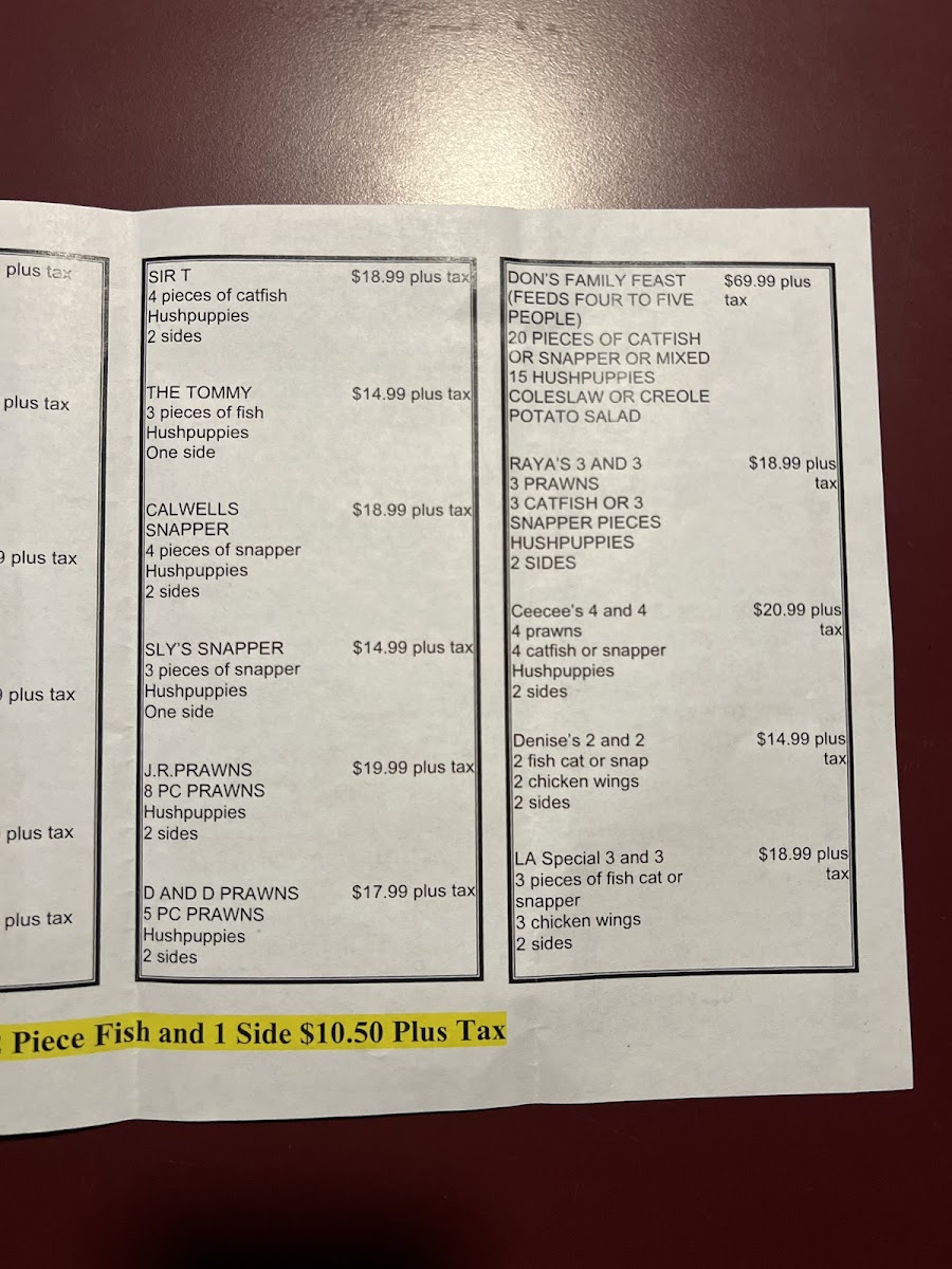 Mississippi Catfish Menu